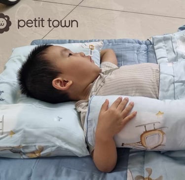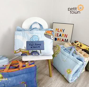 Nếu bố mẹ cần tư vấn gì thêm về sản phẩm set đệm - chăn - gối cho bé ngủ trưa tại lớp này, hãy cứ inbox để Petit Town tư vấn thêm nha