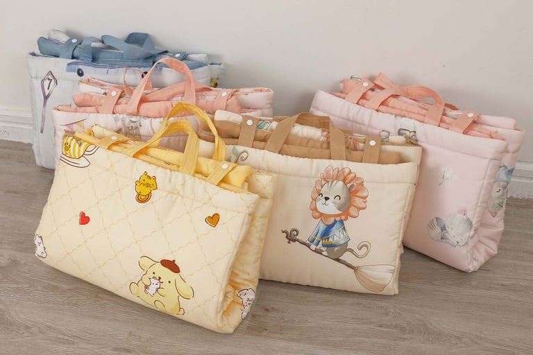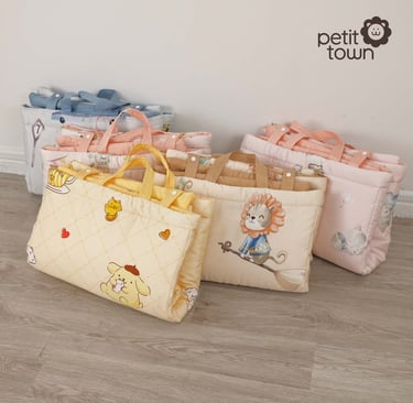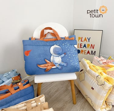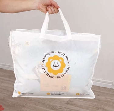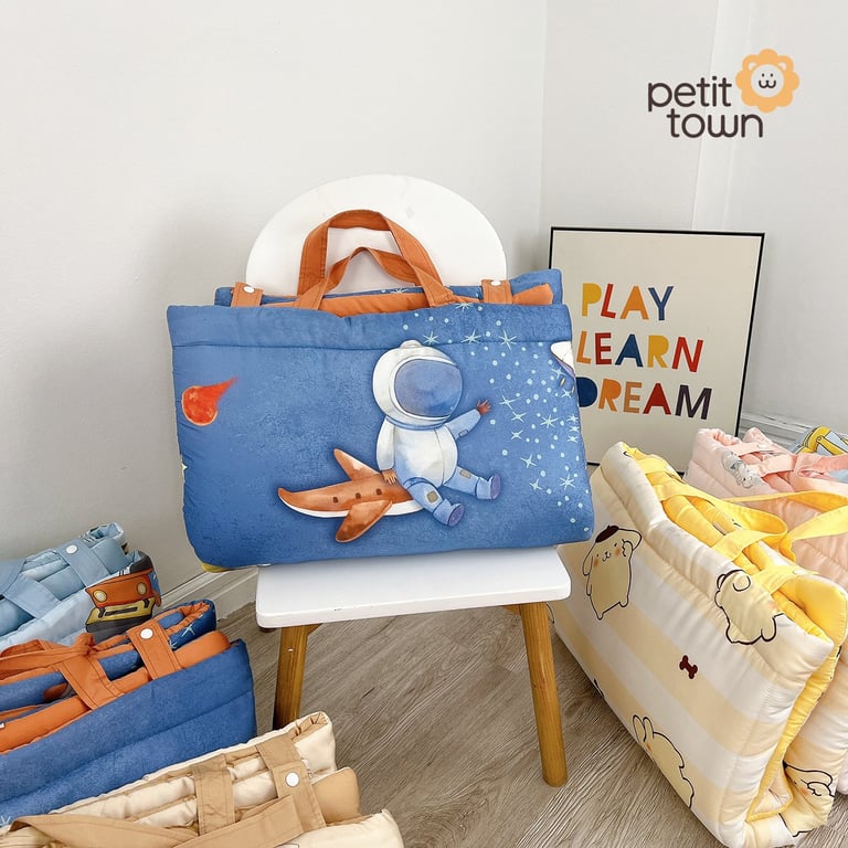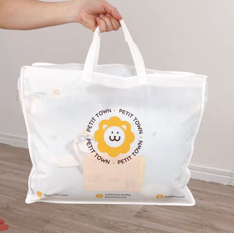 Ngoài ra, mỗi set đều được tặng kèm 1 túi vải xinh xắn nữa, túi này bán lẻ là 30k nhưng bố mẹ mua set đệm - chăn - gối là Petit Town tặng miễn phí luôn nè.